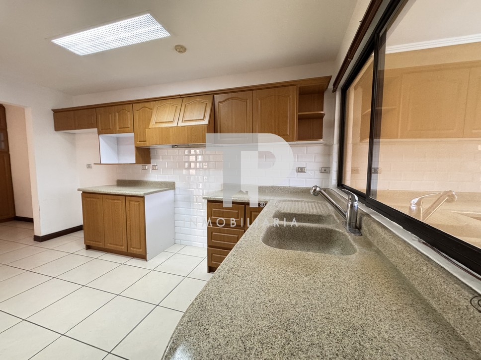 *Cocina con muebles en melamina, sobre en granito y una amplia alacena